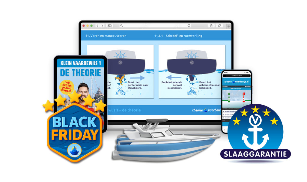 Bij theorie-vaarbewijs.nl krijg je alles wat je nodig hebt: realistische oefenexamens, een online speed cursus én een pakket met slaaggarantie.
